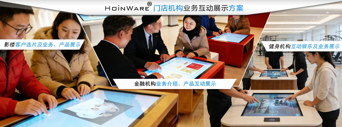 该互动展示方案针对三类典型门店机构/连锁机构定制触屏交互体验:(1)影楼场景下,客户可自助浏览选片、对比套系产品,提升选片效率与产品展示效果;(2)健身机构通过互动游戏、互动内容吸引客流,同步展示课程与会员方案,增强趣味转化;(3)金融机构则提供产品查询、收益对比及风险评估,简化业务咨询流程。整体方案以直观交互优化服务体验,助力门店业务转化。