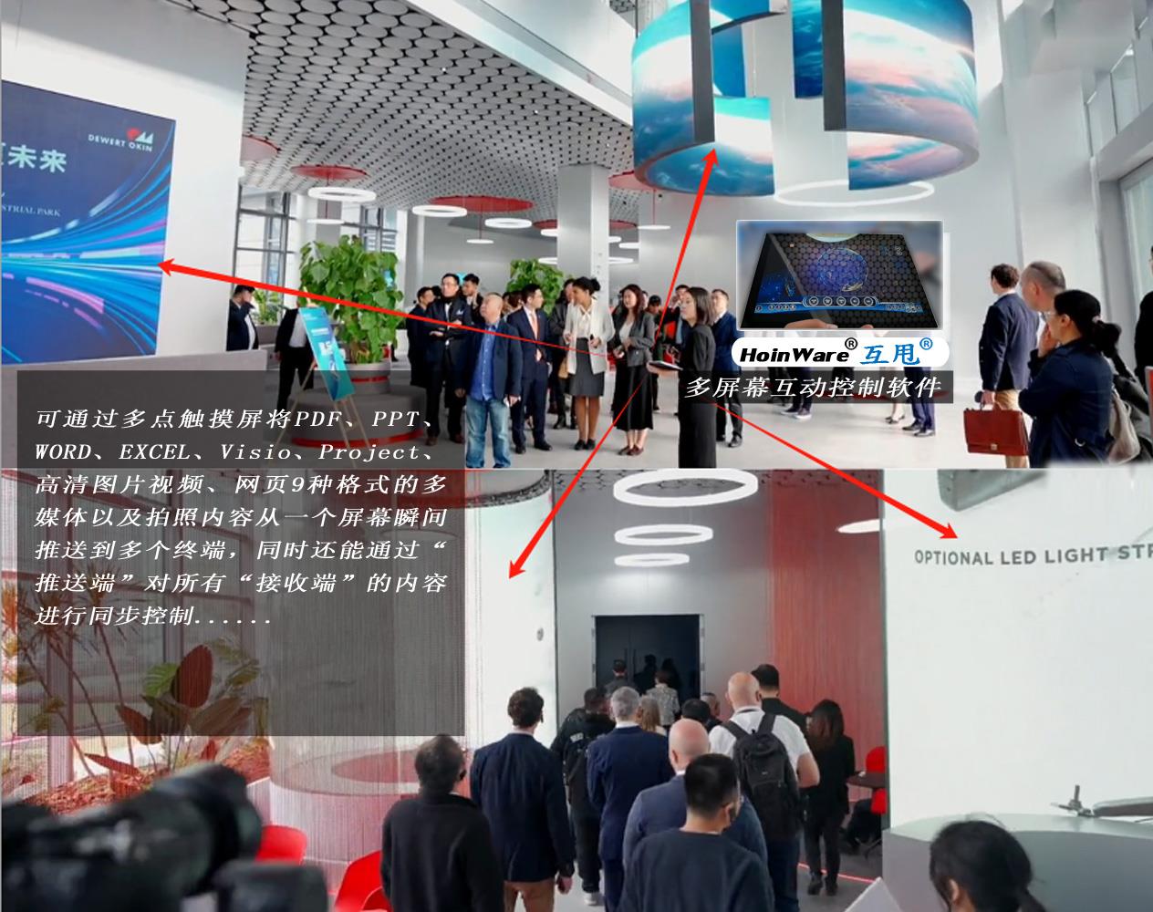 近日,HoinWare®为浙江某上市科技集团公司提供的多屏幕场景互动方案,通过自主研发的多屏幕互甩®及控制软件,