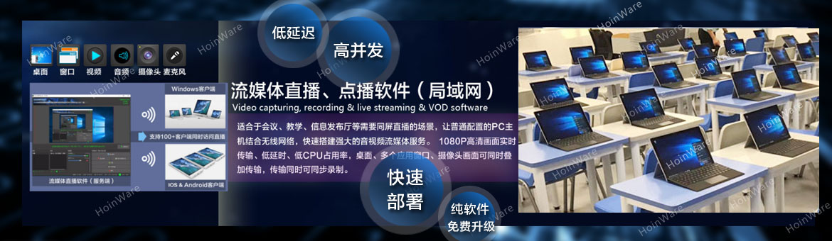 HoinWare局域网流媒体直播软件技术,快速打造专业级、实用型、科技型多媒体教学、培训教室 [ 2020-8-6 ]